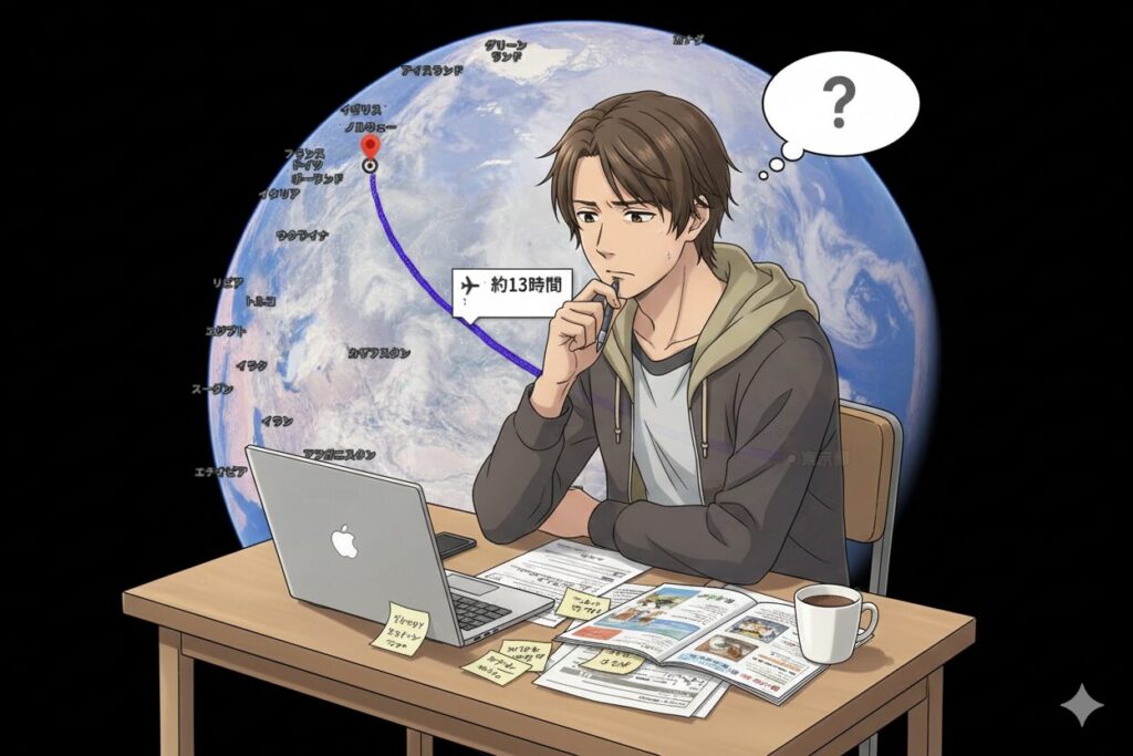- 日本との往復:(13時間×2回=機内泊2日とする)