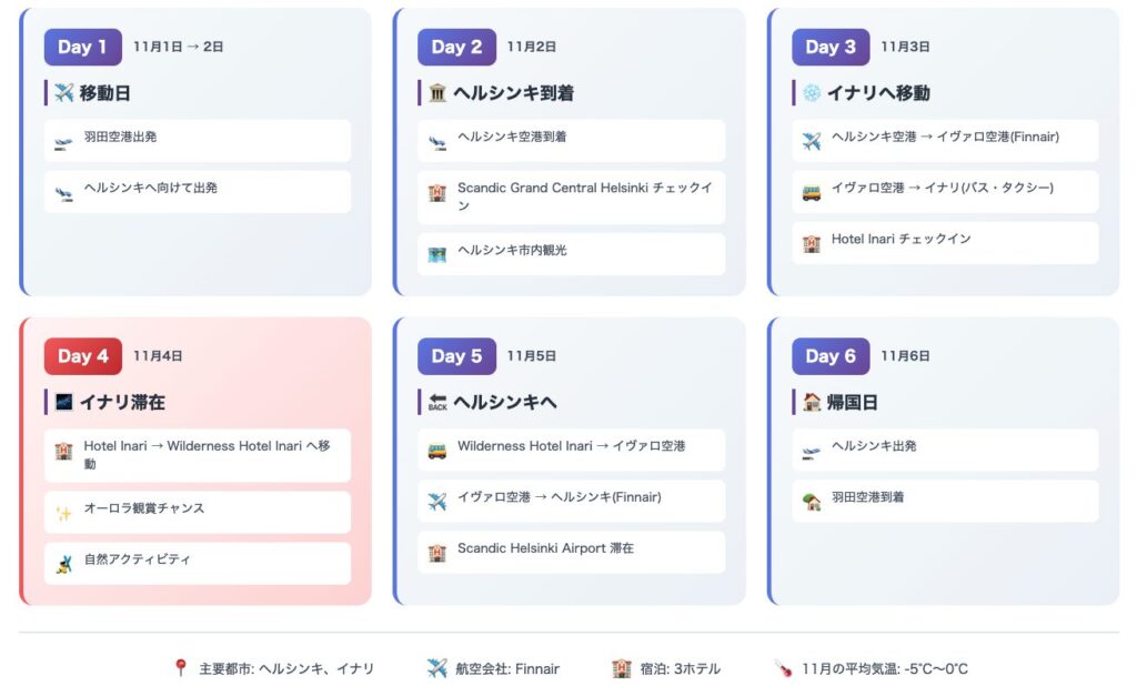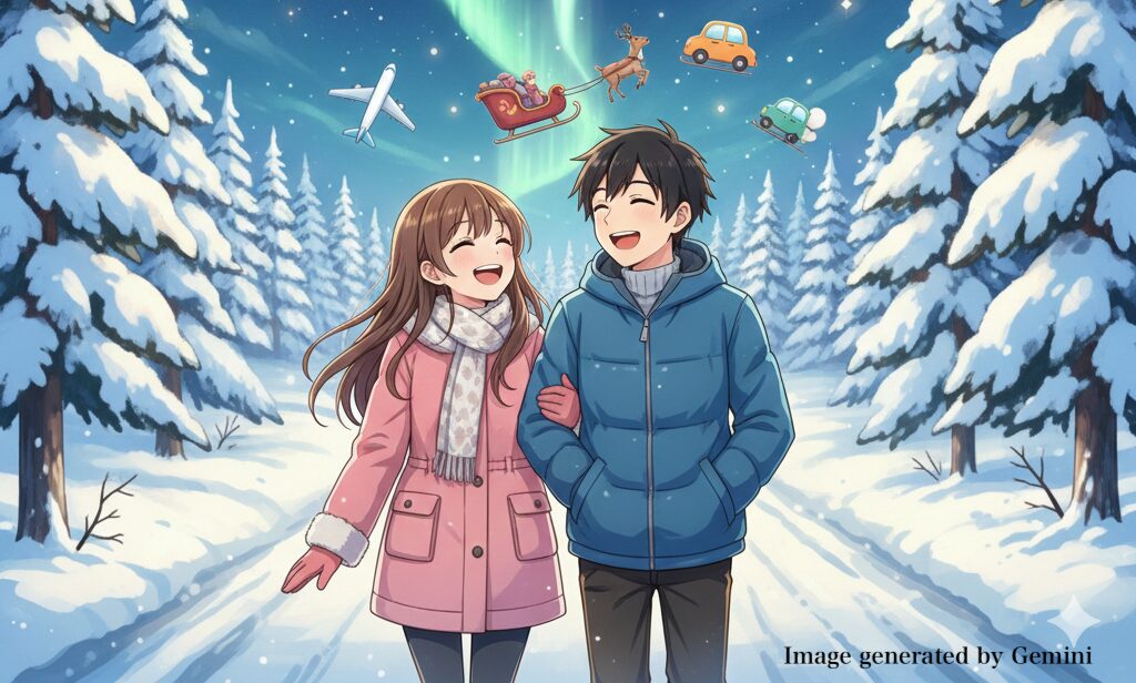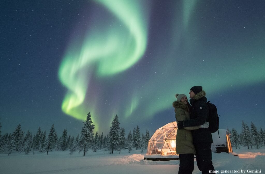 カップル・夫婦で行くフィンランドオーロラ旅行(4泊7日)をモデルに、